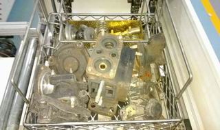 输送线、清洗机和智能仓库均采用PLC和触摸屏控制,有自动、手动控制,实现全自动化智能输送、清洗和存储工作。清洗篮上安装有识别铁片,系统可自动处理工件流向。