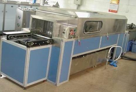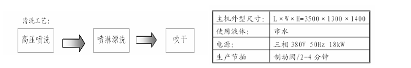 制动阀塞门软管外部清洗机适用制动阀、塞门和软管的外表面清洗。工件外部清洗的目的是去除工件外表的油脂和污垢,本机采用高压水冲洗,并配合采用旋转式清洗篮(高压水冲洗时,工件在冲洗中不断旋转,能有效冲洗阀体各面),去除工件外部的油脂和污垢。清洗机结构为通过式链条输送,清洗、漂洗和吹干实现自动化。清洗水在清洗过程中自动循环,完成沉淀、隔油、过滤等功能。整个循环过程在设备内部的密闭系统中进行,清洗液不会外溅,对外界环境无污染。